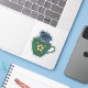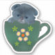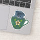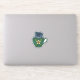 This little cutie has gotten himself into an awful bind. Paired with the bright green coffee mug design, makes it an amusing visual. A wonderful way to add appeal to your laptop, journal or water bottle