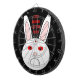 This awesome dartboard features the sad face of a white rabbit. This rabbit has a big frown on its face because it is a lab rabbit that has had cosmetics tested on it. The whites of its eyes are red and swollen. The design has been created to bring to attention the unnecessary suffering caused by the testing of cosmetics on animals. The bold red text reads “stop animal testing now!”