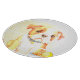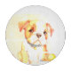 Vintage sad little Bulldog puppy has been added to his round glass cutting board, it makes for great kitchen decor in the home. He is sitting pondering in thought of not being outside and getting to chase the favorite toy around the yard.