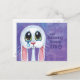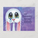 No Bunny Loves Me sad rabbit postcard featuring a whimsical illustration of a crying white rabbit. The rabbit has a heart shaped pink nose and big tear filled eyes. Artwork © Lisa Marie Robinson. All rights reserved.