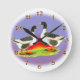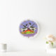 The clock did not take as long to arrive as I thought it might and was extremely well packaged. I didn't do the measurements so I didn't realize it is a little smaller than the average clock but that does not matter (just make sure you check if that's important to you).It is really nifty! It seems very solid and well made not flimsy at all. It has been going well and has kept good time in its few weeks on my wall. Nice product. Gets noticed too! Nicer in real life than the picture but true to the picture