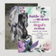 This "Saddle Up and Ride on Over" Horse birthday invitation features a pretty black horse with colourful flowers. Add your favourite photo to the back of this invitation