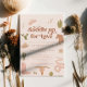 Whimsical and rustic western theme bridal shower invitation featuring illustration of cowgirl boots and hats, horse, cactus, snake, etc. The text says "saddle up for love."