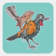 A vector illustration of a New Zealand bird called a saddleback or tieke, it is giving a fantail, piwakawaka a ride on it's "saddle" back.
