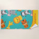 A lovely beach towel, this design features cute lions, giraffes, tigers, elephants, and zebras. A true safari adventure, customise your name at the bottom. Great for a child, order your beach towel today!