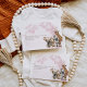 🎈 Pink Balloons Arch Decor: A graceful arch of pink balloons frames your invitation, evoking a sense of joy and festivity that perfectly complements the celebration of a precious baby girl.