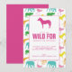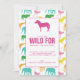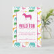 Let’s go wild with this fun birthday party invitation. The pattern features six different animals found on a safari, each in their own colour. A zebra silhouette is featured at the top of the invitation. Shop the entire coordinating collection for all your animal safari party needs.