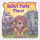Safari Party Animals Party Time envelope seal stickers and party favours features our cute African safari animals, elephant, lion, and hippo from our Animal Parade line standing on the yellow, green savannah grasses with a dry brushed textured yellow, orange sky inside a wavy purple border behind them digitally painting by our talented kid's book illustrator, Traci Van Wagoner. With the customisable words, Safari Party Time! above the wild animals these fun safari bunch stickers are perfect for sealing the envelopes with coordinating kids safari themed party invitations and thank you card. Go wild and use these customisable fun party animal stickers as party favours and party take aways for your kid's birthday party guests. Check out our store and buy all kinds of funny safari party gear like a wild safari happy birthday (your kids name) party room poster, a fun safari animal party puzzle, birthday boy and birthday girl buttons and t-shirts plus much more. Have a wild time and plan a perfect safari party for your child's next birthday!