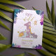 Get ready to embark on a wild safari adventure! This budget-friendly Girls 1st Birthday Invitation featuring cute safari animals is the perfect way to celebrate your little one's journey into toddlerhood. It's a 'Wild One' party filled with fun and excitement, complete with colourful confetti to set the mood. Invite your friends and family for a roaring good time together to celebrate this special milestone. The modern typography adds a stylish touch, while the boho elements create a trendy and playful atmosphere. Let the birthday girl and her guests immerse themselves in the wild jungle surrounded by their favourite animals.