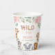 Safari animal wild one blush pink floral 1st birthday paper cup.