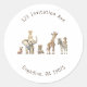 Introducing our safari animals baby shower with name favour classic round sticker, perfect for a cute, whimsical, gender-neutral celebration! It features a modern safari animal theme with adorable jungle creatures like a monkey, elephant, giraffe, lion, and zebra. With its simple natural boho-inspired watercolor landscape, this sweet scene is ideal for welcoming a little boy or girl. This design is as charming as it is timeless. Please feel free to ask any questions regarding the product's design; we are happy to help!