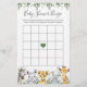 Safari animals themed baby shower bingo game card features a watercolor safari animals illustration and watercolor greenery eucalyptus garland and elegant handwritten style font.