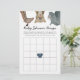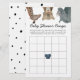 Have some fun at your baby shower with this bingo game card. Illustration of cute safari animals (giraffe, snow leopard, rhino, and elephant). The bingo game asks the guests to guess what gifts the mummy-to-be will be receiving. Original illustration and design by Namibear Art Studio.©Namibear