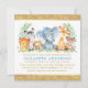 Safari Animals Baby Shower Blue Bow Gold Sq Invitation