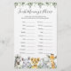 Safari animals themed baby shower finish mummy's phrase game card features a watercolor safari animals illustration and watercolor greenery eucalyptus garland and elegant handwritten style font.