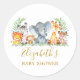 Watercolor Safari Animals Greenery Baby Shower Invitation Envelope Seal. Baby Animals include Elephant, Monkey, Giraffe, Rhino, Zebra and Lion on fern leaves. Watercolor Botanical Greenery. Gold Text.
