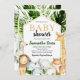Bring the wild to your baby shower with this charming Safari Animals Baby Shower Invitation. Featuring a loveable jungle crew and lush greenery with a touch of gold sparkle. Perfect for a baby boy celebration, Whether you're planning a wild adventure or a jungle-inspired gathering, this invite sets the tone for a joyful and memorable day honouring the mum-to-be. BBS247