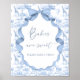 This item blends classic elegance with whimsical charm. The design features a delicate toile de Jouy pattern in soft baby blue, showcasing vintage-style safari animals like elephants, giraffes nestled among floral and leafy details. The intricate linework and gentle colour palette give it a timeless, heirloom feel—perfect for a refined and sweet celebration. Accented with elegant typography and frame with bow. This itemeffortlessly blends whimsy, tradition, and grace, offering a beautiful way to welcome a new baby. Matching items available.
