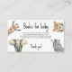 Safari (jungle) baby shower invitation featuring a watercolor illustration of a giraffe, leopard, elephant and zebra. "A little wild one is on the way." Matching items available.
