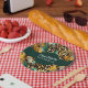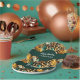 Safari-inspired paper plates featuring animal fur patterns, rich dark green leaves motifs, and accents of brown golden spots with black patches – perfect for wildlife themed parties.