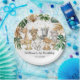 This adorable design features tropical green and gold watercolor greenery and a group of cute jungle animals