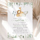 Invite friends and family in style and set the tone for your special day with this charming baby shower invitation. Design features safari animals (hippo, lion, elephant, giraffe) and greenery on white background.