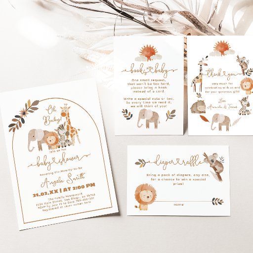 Safari Animals Minimalist Simple Baby Shower Invitation