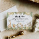 A safari themed thank you card that features safari animal graphics in green and beige tones and a modern font. This flat card has the word "thank you" and an editable thank you message on the front and an animal pattern on the reverse side. This card is the perfect way to thank guests for your birthday gifts. Pair with anything in the OSCAR collection for a cohesive look.