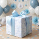 Elegant blue Toile de Jouy Floral wrapping paper with an adorable safari animal theme. This beautifully designed wrapping paper features a hot air balloon and adorable safari animals - giraffe, elephant, zebra and lion - on a blue chinoiserie-inspired floral background. With a vintage aesthetic and sleek typography, this wrapping paper sets the tone for a timeless celebration. It's perfect for a safari-style baby shower or a boy's birthday party, combining charm and sophistication.