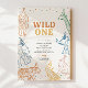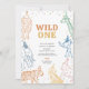 Make your child's 1st birthday party unforgettable with this delightful safari animal birthday party invitation. Each animal is adorned with a cute party hat, enhancing the celebratory vibe. This invitation design perfectly captures the joy and excitement of a child's birthday party, making it an ideal to set a fun and cheerful tone for their celebration.