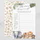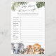 Introducing the "Safari Baby Boy Shower Price is Right Game," a delightful addition to any baby shower celebration. This game features exquisite watercolor designs of safari animals, including an elephant, tiger, lion, racoon, and chimpanzee, beautifully accented with tropical leaves for a touch of the wild. Designed to be gender-neutral, it's perfect for welcoming a baby boy or girl, making everyone feel included. Dive into the fun with this safari-themed game, where guests can guess the price of baby items, creating memorable moments at your baby shower.