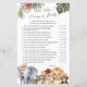 Introducing PixeliaDesigns' "Safari Themed Guess Who Mummy or Daddy" game, perfect for adding a fun and wild twist to your baby girl's shower. Designed with a charming "Wild One Safari Animal" theme, this baby shower game features adorable watercolor illustrations of cute safari baby animals, including a giraffe, an elephant, a tiger, and a zebra. It's a delightful way to engage guests in guessing games about the soon-to-be parents, making everyone feel more connected and entertained. Whether for decoration or activity, this game brings a touch of the safari adventure to your celebration, ensuring a memorable experience for all your guests.