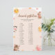 This adorable baby shower game card features a charming farm animal theme with cute illustrations of a cow, bunny, chick, horse, and pig, surrounded by cheerful flowers and a smiling sun. The soft pastel colours and whimsical design create a warm and inviting atmosphere. Visit our shop to view our entire Brown Cute Farm Animal collection.