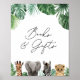 Show friends and family where to leave their books and gifts with this safari themed sign, featuring watercolor animals and tropical greenery.