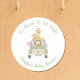 Cute stickers for your safari-themed baby shower featuring an illustration of baby animals (lion, zebra, elephant, giraffe and monkey) piled into a safari vehicle and "It's About To Get Wild!" and the name of the mother-to-be in a jungle green script.