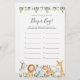 Safari animals themed baby shower guess what's in the diaper bag game card features a watercolor safari animals illustration and watercolor greenery eucalyptus garland and elegant handwritten style font.