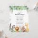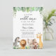 Celebrate the imminent arrival of your little wild one with our enchanting Safari Jungle Baby Shower Invitation Suite! This delightful collection features a playful ensemble of safari animals, including a zebra, lion, elephant, monkey, and giraffe, creating a whimsical tropical woodland atmosphere for your baby shower.