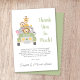 Cute baby shower thank you card featuring a watercolor illustration of baby zoo animals (lion, elephant, zebra, monkey and giraffe) piled into a safari vehicle. Customise your thank you message, add your baby's name and birthdate on the vehicle and your names in a dark grey signature-like script.
