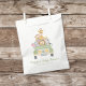Cute gender-neutral party favour bag that features a watercolor illustration of baby animals (lion, elephant, zebra, monkey and giraffe) piled into a safari vehicle and "Thank You So Much!" and the the mother's name in a jungle green script.