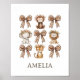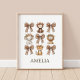 Add a sweet boho touch to your nursery with this Safari Bows And Jungle Safari wall art print. Featuring watercolor coquette animal print bows, an elephant, monkey, lion and tiger all with floral crowns, this dreamy design is perfect for a new baby’s room. Add a name for a special, personal touch!