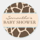 Giraffe print with lace trim ribbons and a baby blue contrast.