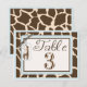 Zebra and giraffe prints with 3D-look lace trim, ribbon bow, and giraffe logo table card.