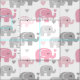 Pink and grey elephants baby girl fabric. Copyright © Decamp Studios