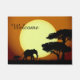 This illustration shows a mother elephant together with her baby elephant, walking through the african savannah during sunset.