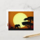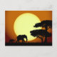 Safari elephants at sunset postcard