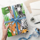 Safari friends, giraffe, zebra, tiger, palm leaves wrapping paper