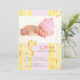 Whimsical illustration of jungle safari giraffes + cute stripes in shades of light pastel pink & yellow designed on custom Baby Photo Birth Announcements. The adorable giraffe cards can be fully customised with your own wording & picture! Feel free to change the sizes, fonts & colours of the text as well. ((Contact ujean4791@gmail.com for custom work and/or matching items.))