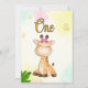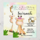 Cute birthday party invitations. This fun design features a sweet giraffe Trendy pink, blue and gold colours with a touch of faux gold glitter. You can edit this girl birthday invitation template yourself!