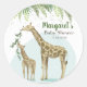 Safari Giraffe with Green Leaves Round Sticker to Baby Shower. For more advanced customisation of this design, simply select the "Customise It" button above!