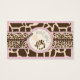 Giraffe, cheetah, and zebra prints with 3D look ribbon trims and giraffe tag.